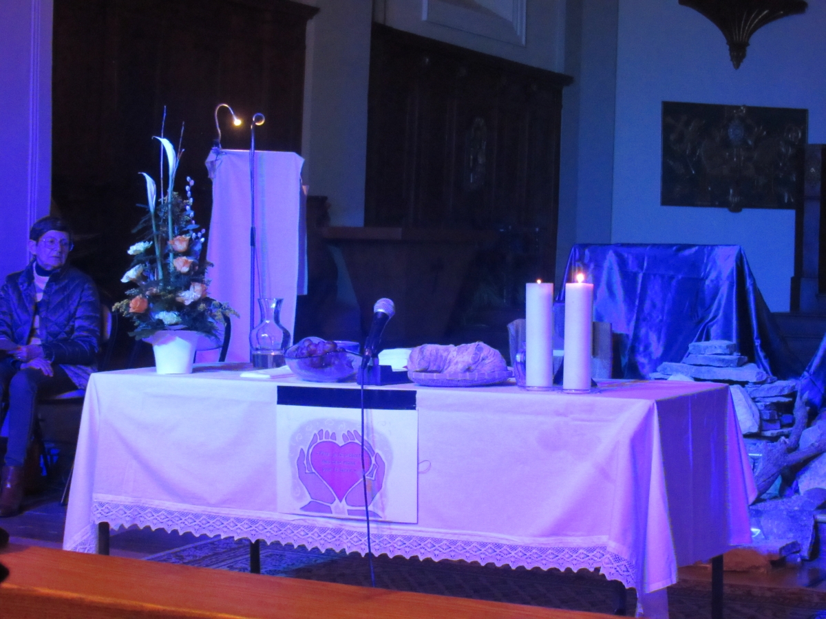 Une grande table était dressée dans l’allée centrale de l’église pour symboliser la dernière Cène. Après la procession d’entrée, plusieurs personnes ont pris place autour de la table.