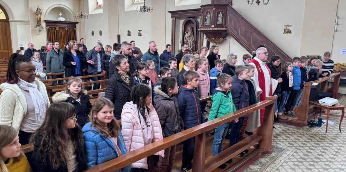 Les enfants de la Communauté de paroisses se sont retrouvés à l’église de Ruederbach pour méditer le Chemin de Croix.